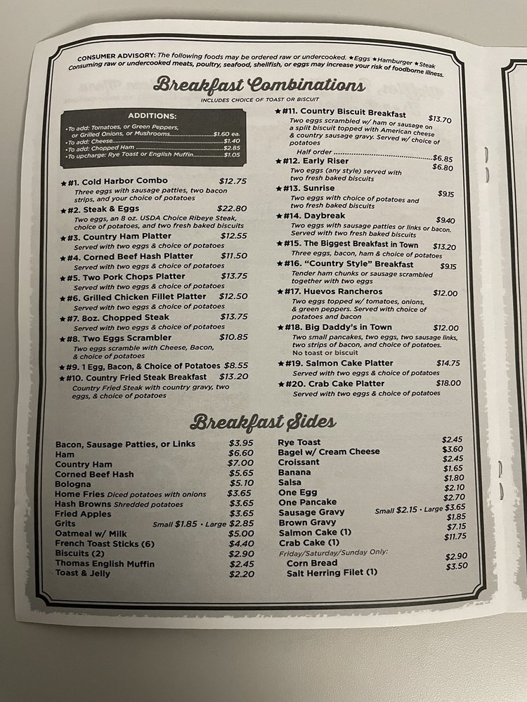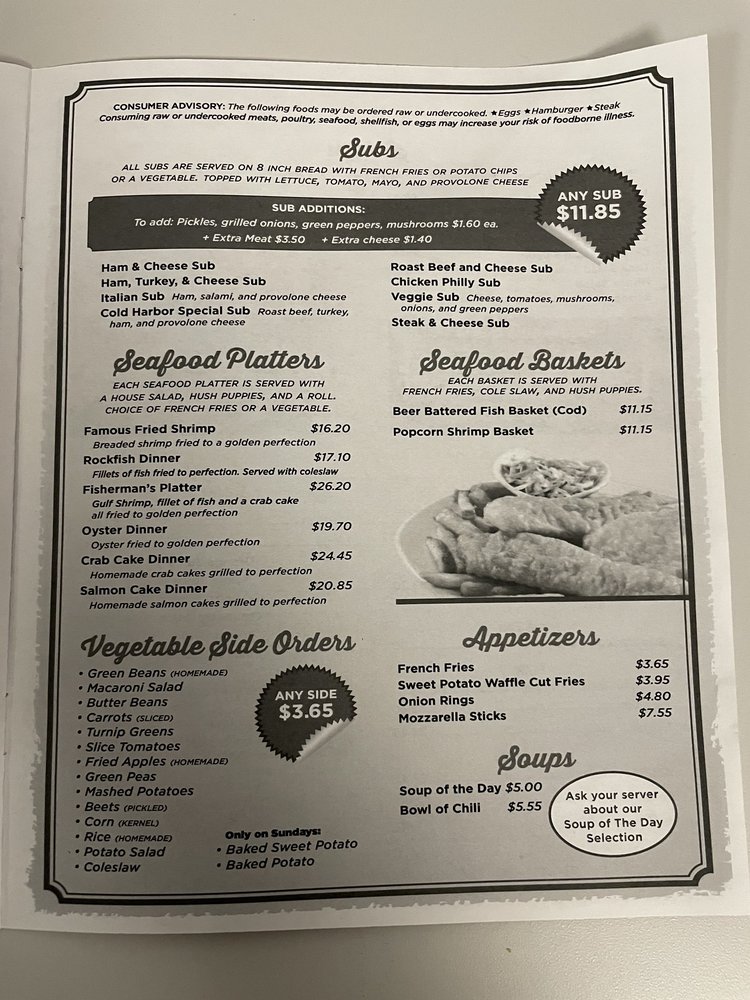 Located in Mechanicsville, VA, Cold Harbor Restaurant is a casual deli that offers a wide range of options for breakfast, brunch, and lunch. Known for its friendly service and classic home-style cooking, this gem has garnered rave reviews from satisfied customers. The menu boasts appetizers like French fries and mozzarella sticks, along with hearty salads like the Chicken And Mushroom Salad and Chef Salad. The restaurant's atmosphere exudes a cozy, mom-and-pop feel, making it a popular spot for locals and visitors alike. With attentive staff and a bustling yet laid-back vibe, Cold Harbor Restaurant is a must-visit for those craving a comforting and satisfying meal.
