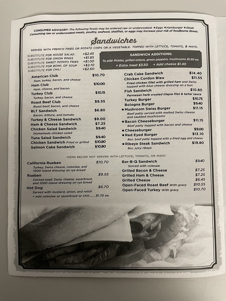 ham, cheese and bacon. topped with lettuce tomatoes, and mayo pickles, grilled onions, green peppers, mushroom $0.80